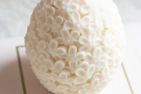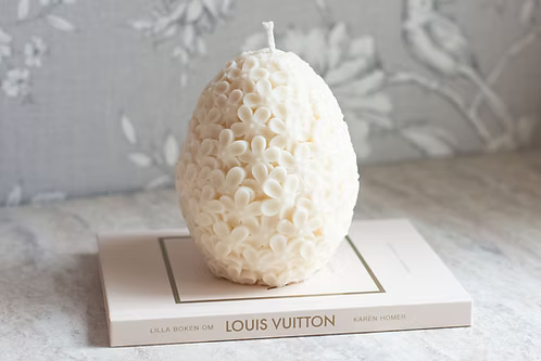 Ljuvliga Ljus handgjorda dekorationsljus Blomster Ägg är ett ljus i form av ett stort ägg fullt med små blommor på, en stilren inredningdetalj till påsk.