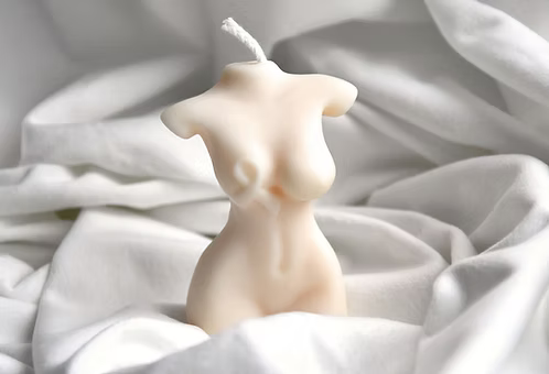 Ljuvliga Ljus handgjorda dekorationsljus Rosa Bandet är ett ljus i form av en kvinnokropp med en rosett vid bröstet. Gjort på vegetabiliskt rapsvax.