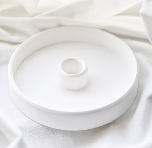 Rund ljusstake med mått ca 13 cm i diameter. Material : Mineralvitt